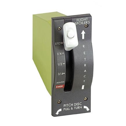 Sensata|Kavlico’s Flight Spoiler Control Lever (FSCL) meets the small envelope, minimum weight, and high reliability demanded by today’s aerospace industry. The design of the FSCL contains many features common to Sensata|Kavlico’s overall line of pilot control products. The FSCL’s high reliability and durability have been verified through extensive qualification and endurance testing. The lever is locked in the stow position. Once the button is depressed on the handle, the lever can be released from the stow position. As the lever moves, the output signals from the RVDTs change continuously. These signals are processed in the override to go to Emergency position flight control computer and the spoilers move to the commanded position (1/4, 1/2, 3/4, Max and Emer).